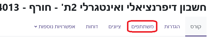 1. היכנסו לאתר הקורס ועברו לחוצץ "משתתפים" הממוקם מתחת לכותרת הקורס: