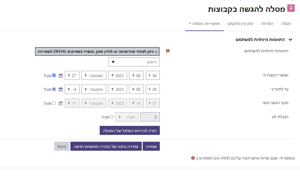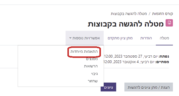הגדרת מועדי הגשה מיוחדיים (אישיים / קבוצתיים)