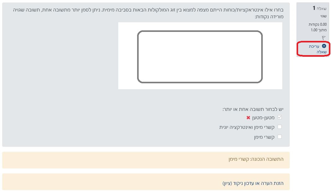 5. במידה וזיהיתם בעיה באחת השאלות, ניתן לעבור מכאן לעריכת השאלה ולתקן אותה לכלל הסטודנטים: