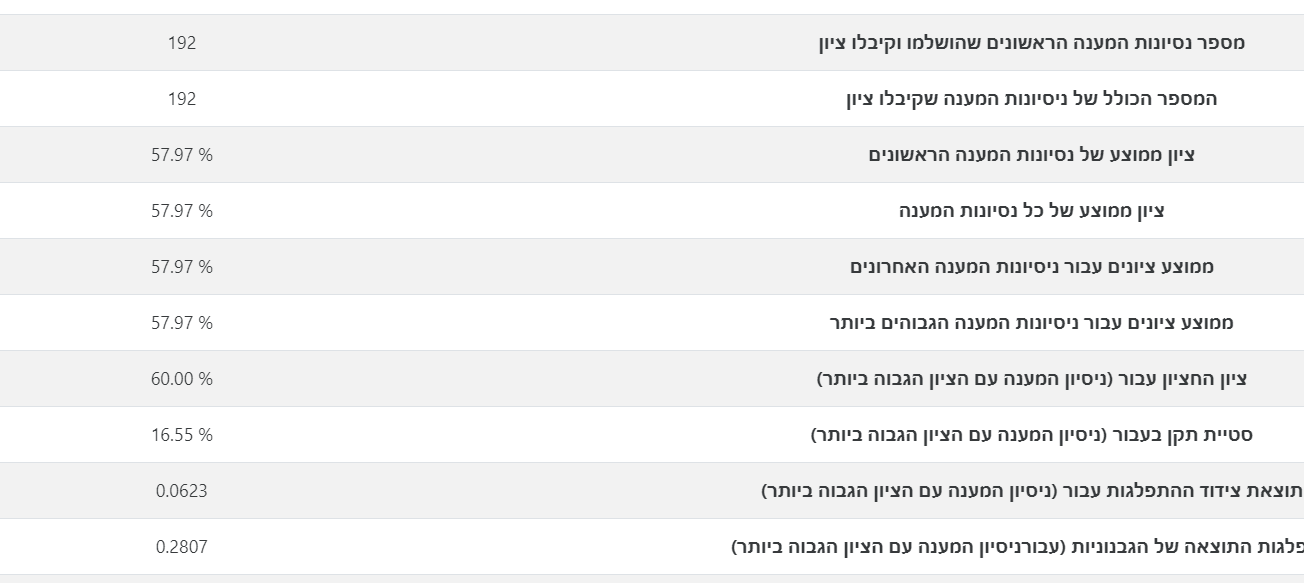 התוצאות הסטטיסטיות של בחן מסוג רב ברירה