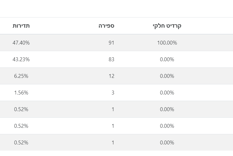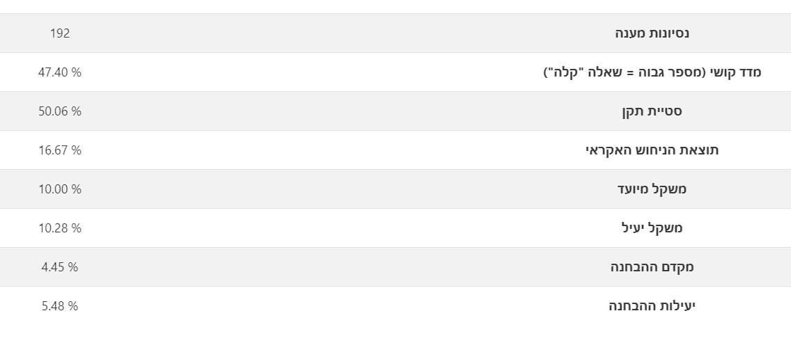 * במערכת ה Moodle המדדים נתונים באחוזים