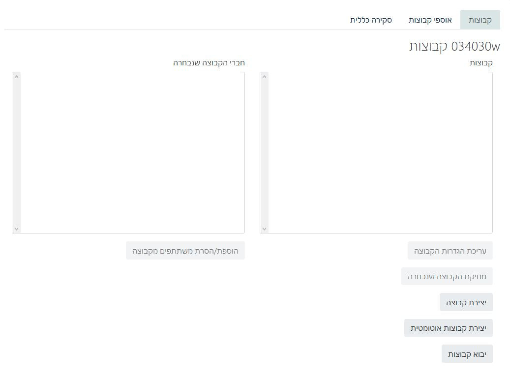 2. בעמוד הבא יוצגו כל הקבוצות הקיימות כרגע באתר, כולל אפשרויות לפעולות שונות עם קבוצות.