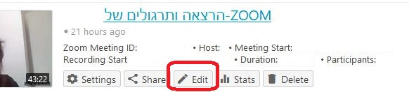 2. אתרו את ההקלטה הרלוונטית ולחצו על edit